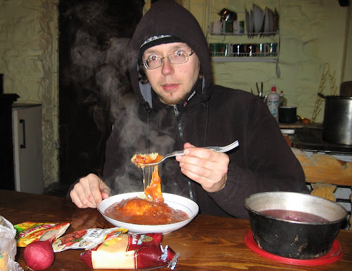 Po zdobyciu Czupla, pomaszerowaliśmy przez Magurkę Wilkowicką (schronisko PTTK) do chatki studenckiej pod Rogaczem. Przez przypadek trafiliśmy do sąsiedniego gospodarstwa, i dobrze. Bo okazało się, że akurat nikogo w chatce nie ma, a pani, do której trafiliśmy ma klucze. Zadzwoniła do chatkowego i za jego zgodą udostępniła nam chatkę.